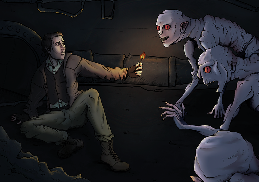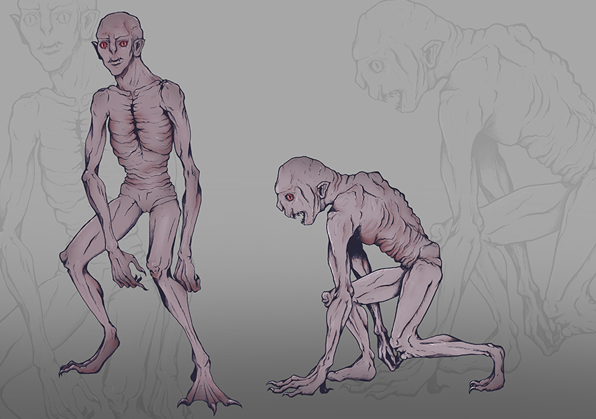 Own interpretations of the characters and creatures in the science fiction novella by H. G. Wells.